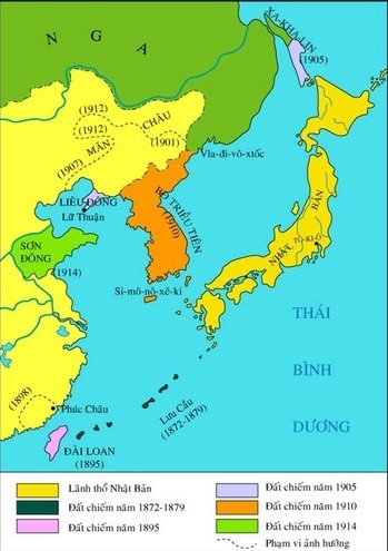 - Năm 1904-1905 Nhật gây chiến với Nga buộc Nga phải nhường cửa biển Lữ Thuận, đảo Xa-kha-lin, thừa nhận Nhật Bản chiếm đóng Triều Tiên.
